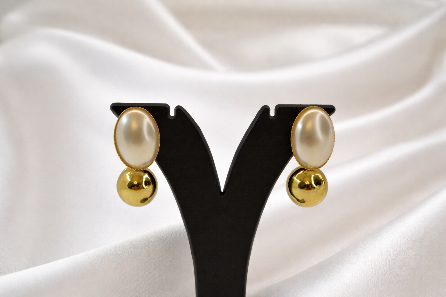 Classic pearl elegance meets bold gold shine. These drop earrings add effortless sophistication to every look.
