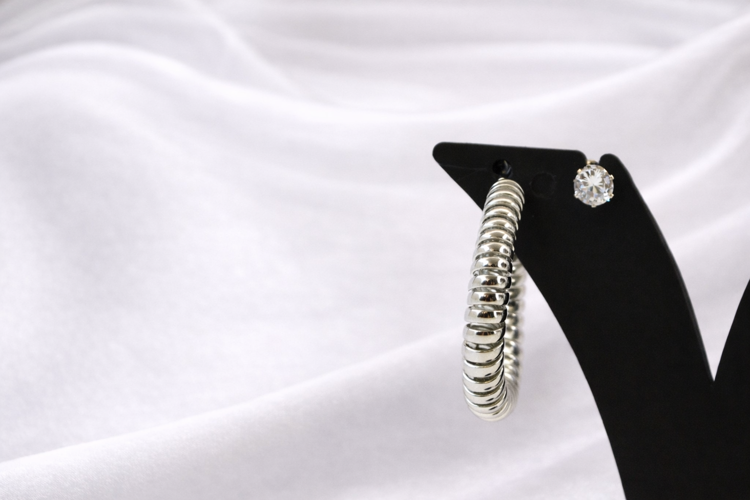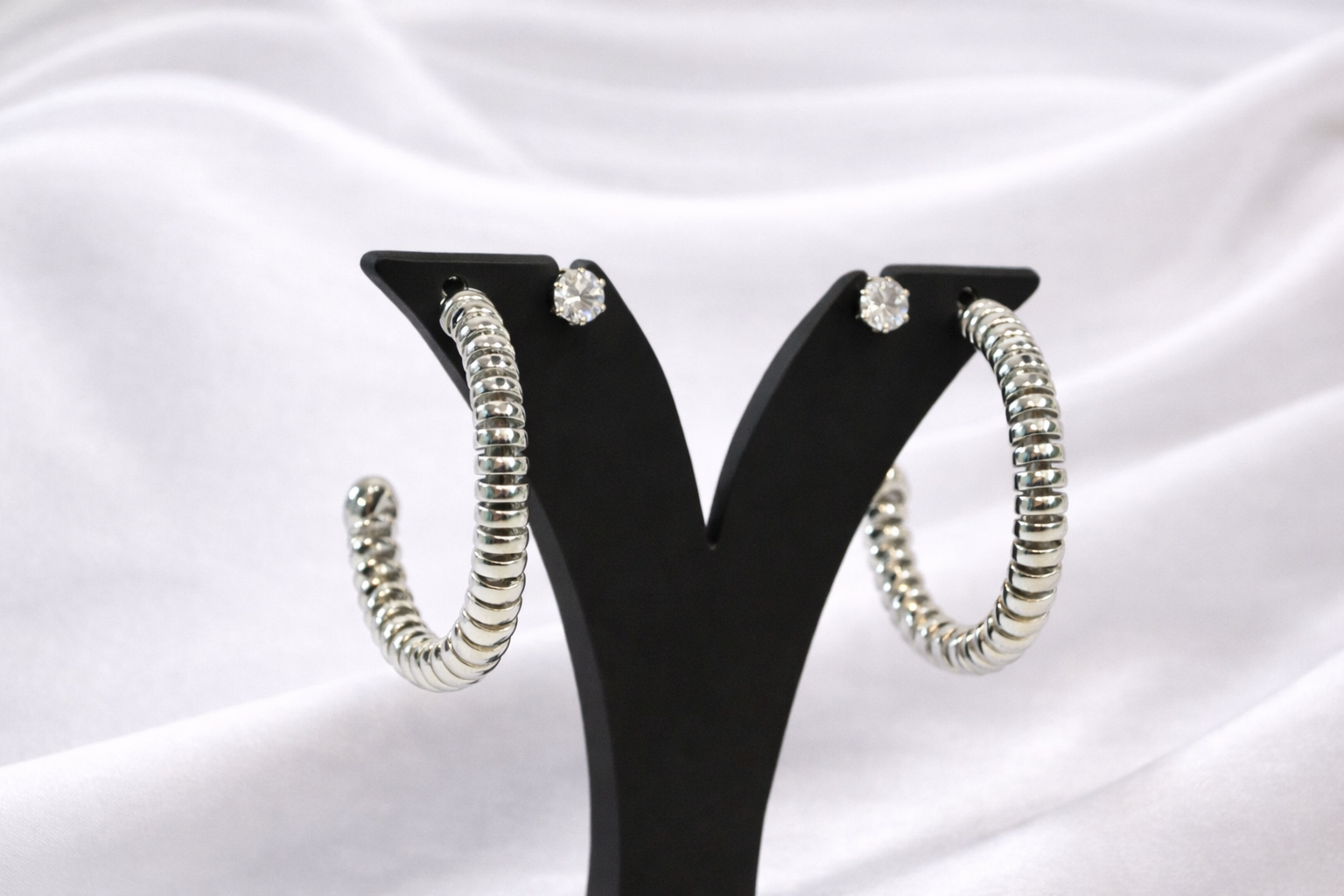Be the first to review “Silver Ribbed Hoop Stud Earring”