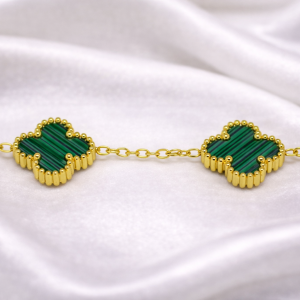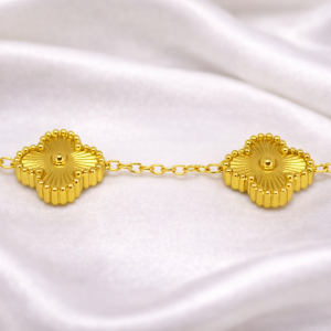 A timeless gold-tone chain bracelet adorned with luminous ivory clover motifs. Soft, refined, and effortlessly chic, this piece adds a touch of understated luxury to both everyday looks and special occasions.