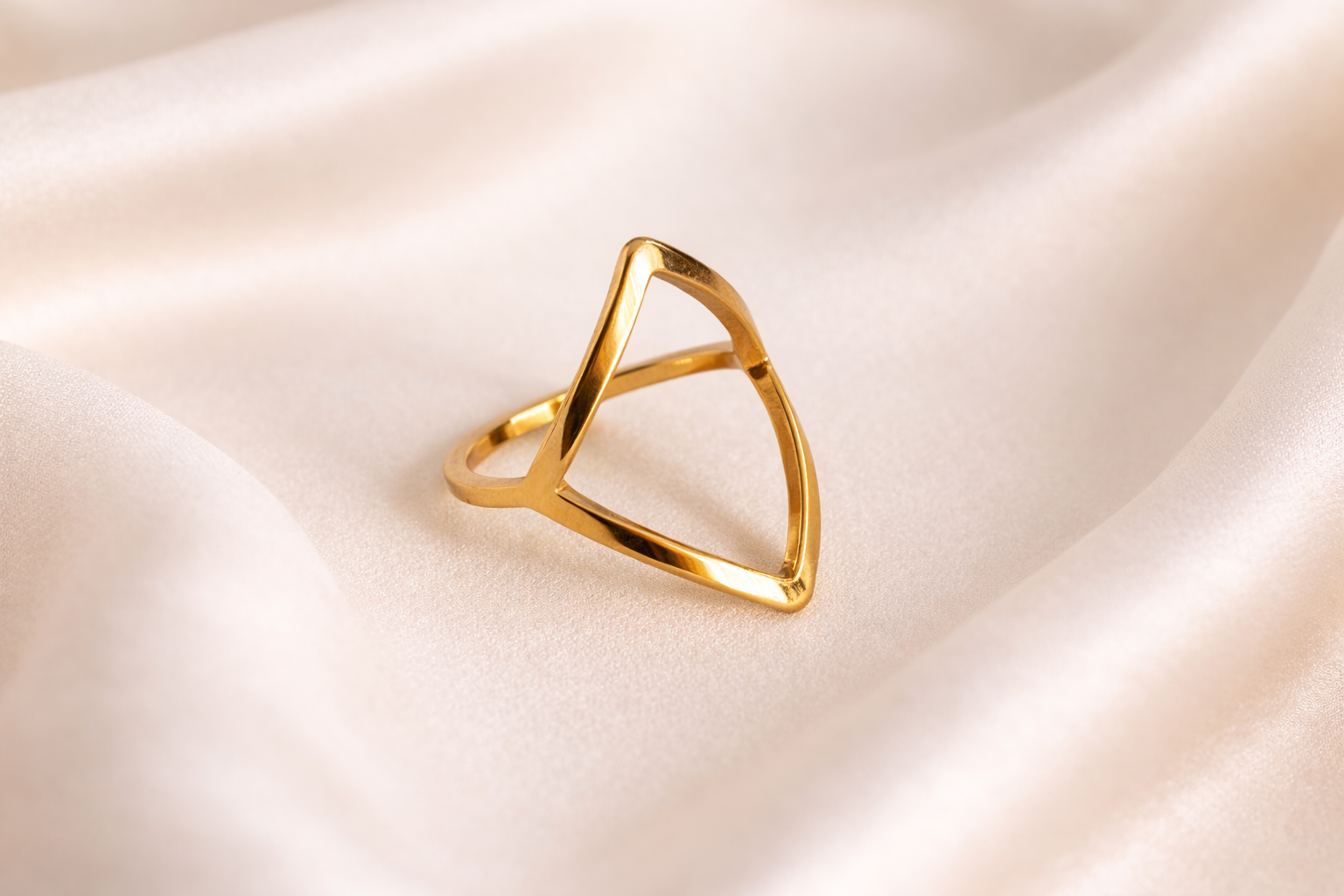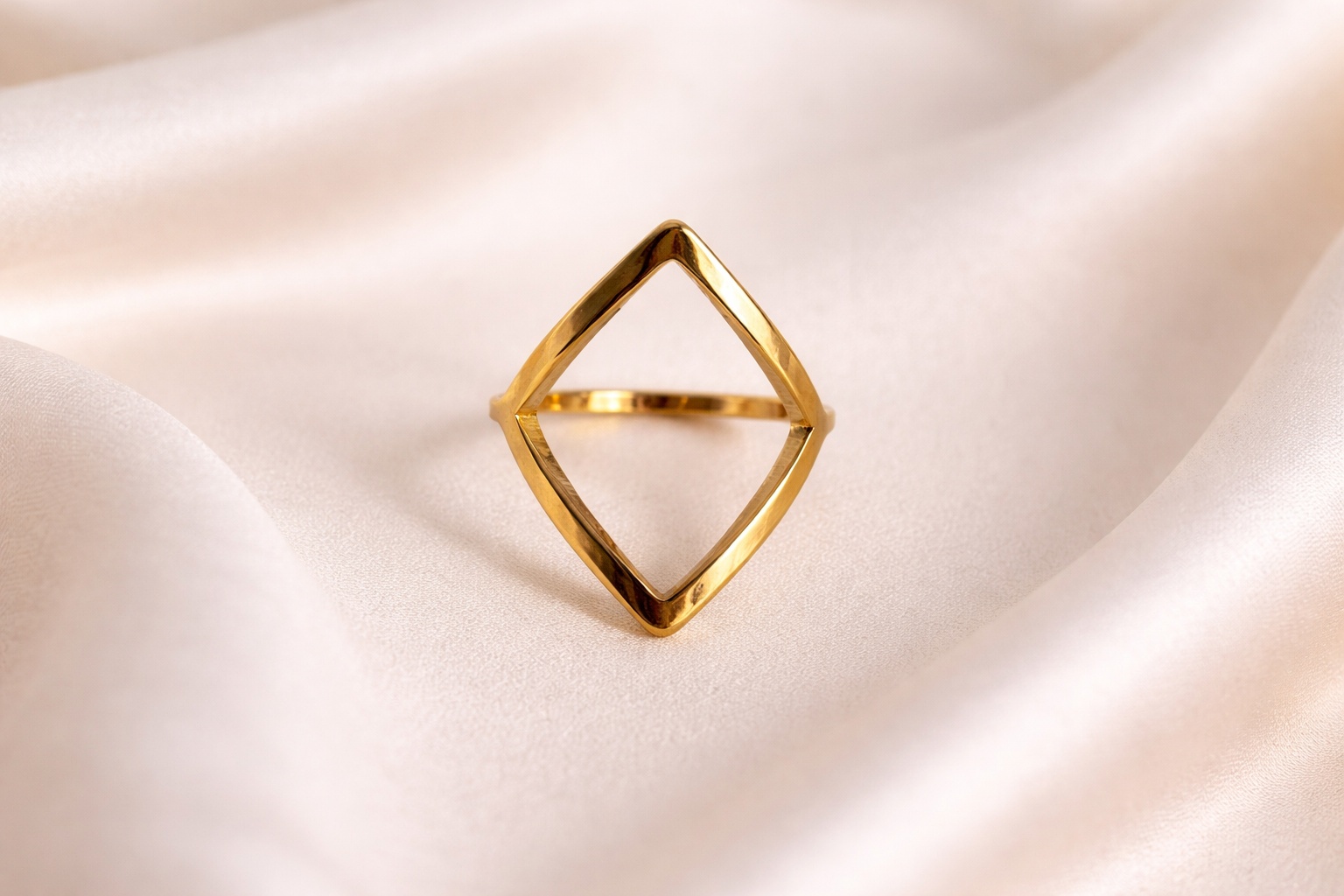 Bold in form yet effortlessly minimal, the Virelle Geo Ring features a sleek geometric silhouette that adds a modern, statement edge to your everyday style.